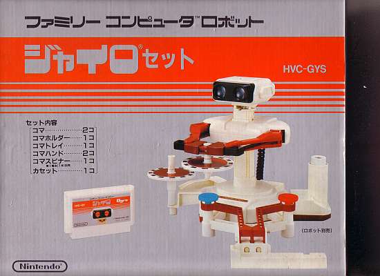 | ジャイロセット(箱説あり) 注:NEWファミコンなどでは正常動作しません | −−− | −−− | 「ロボット」シリーズ:コマ×2・コマホルダー×1・コマトレイ×1・コマハンド×2・コマスピナー×1・カセット×1付き | |